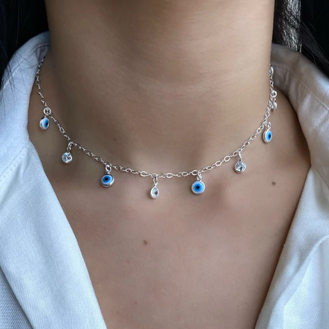 Descubra a magia do Colar Olhos Gregos com Zircônias Redondas Penduradas, uma joia que combina proteção e brilho em um design encantador. Cada olho grego simboliza a defesa contra energias negativas, enquanto as zircônias redondas adicionam um toque sofisticado e luminoso.