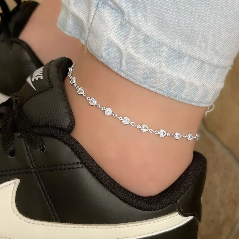 A Tornozeleira – Corações com Zircônias é puro encanto! Seu design delicado com corações adornados por zircônias transmite romantismo e elegância, refletindo luz a cada movimento. Uma peça perfeita para quem ama acessórios cheios de significado.